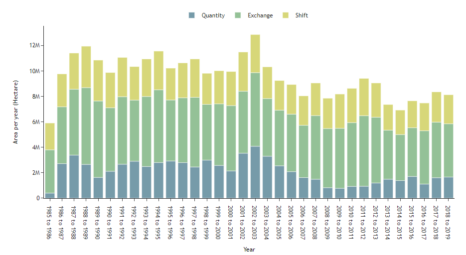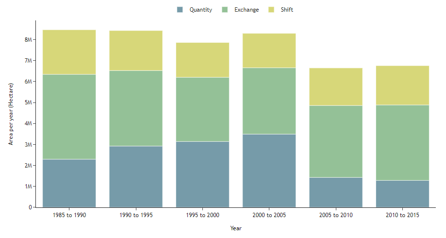 | Forest | Natural | Agriculture | NonVegetated | Water | NotObserved | Sum | Loss | |